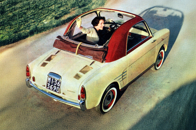 The Autobianchi Bianchina was the first product from to roll out of the Turin factory in the post-war era after forming an alliance with the tyre-manufacturer Pirelli. it was based on the Fiat 500, and ended up being available as a saloon, estate, convertible and an appealing roll-top coupé. Luigi Rapi, who was in charge of Fiat’s special body unit and helped to set up production in Desio, had designed the completely new and stylish body.