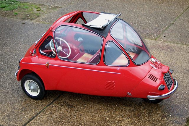 The Heinkel 200 was also produced in the UK by Trojan from 1961 as the Cabin Cruiser. Given its 197cc engine, cruiser was hardly an apt title for this economy special that you could only get into via the front. As bubblecars go, the Heinkel was certainly an improvement over the Isetta-BMW it was based on – it had space (just) for four people, was lighter, and could cruise happily at up to 50mph.