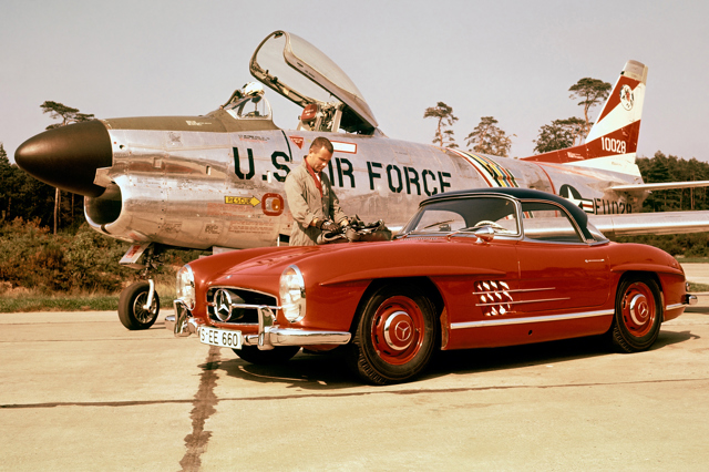 In 1957, Mercedes-Benz replaced the 300SL Gullwing with the Roadster. It was a simplified version of the original, and received a revised spaceframe chassis to make room for conventionally-opening doors. But the trade off for this move towards orthodoxy was a 100kg jump in kerbweight - and a slightly softer, more relaxing suspension set-up to please the Americans who were (primarily) buying this car.