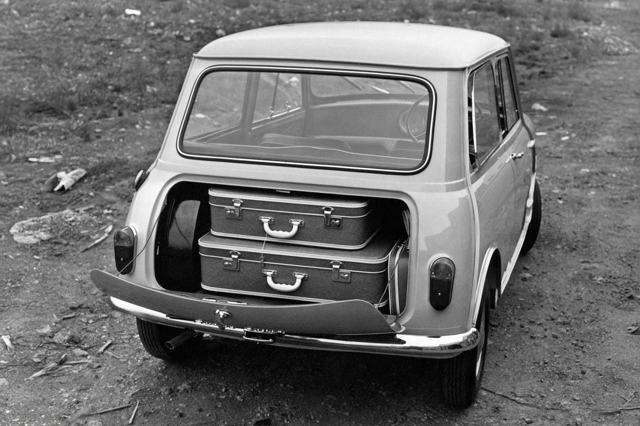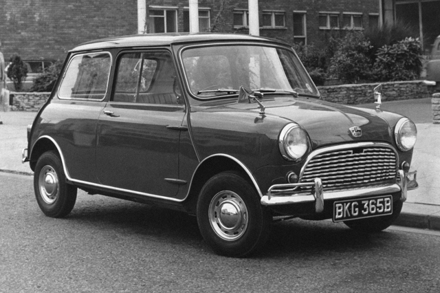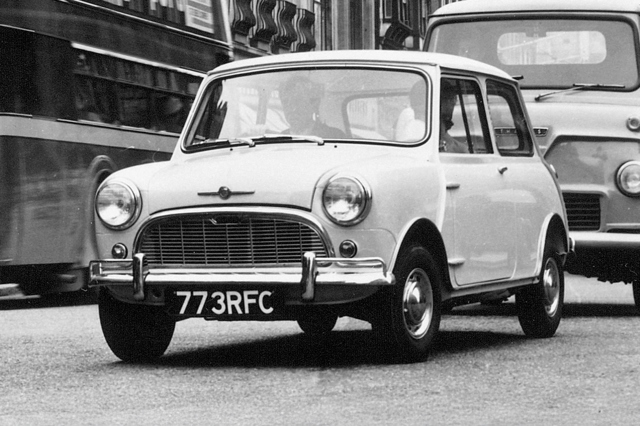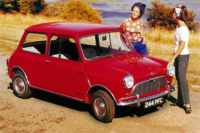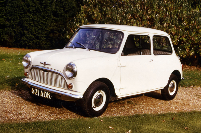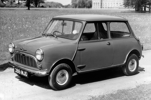 1959 Morris Mini-Minor: pure, unspoiled Mini. Along with the Austin Se7en, this car caused an absolute sensation when launched during August 1959. People took a long time to latch on to the fact that something so small could accommodate four fully-grown adults and their luggage.