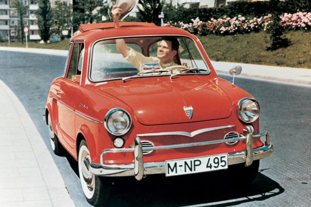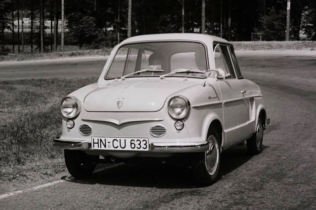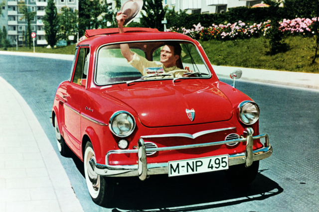 The NSU Prinz was the company's first all-new car developed by itself, after brief spell putting together licence-built Fiats. It was an economy car, launched at the Frankfurt motor show in 1957, to compete with Goggomobile and Lloyd on the German market, and like those, was powered by a two-cylinder engine in a lightweight body. The Prinz was air-cooled, though, and was underpinned by fully independent suspension. There was room for four - just - and some luggage space up front, but this was clearly a utilitarian car, completely minimalist in nature - and oddly fun to drive.