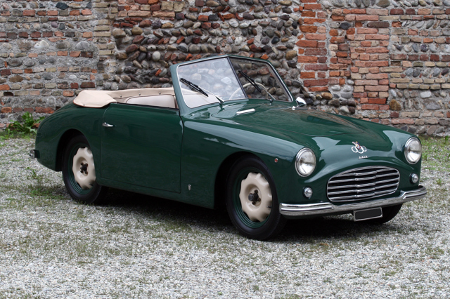 Launched in 1950, the Amica was a two-seater available as either a coupé or a roadster, and was the company’s first serious effort at a standalone car. Suspension was courtesy of Fiat but Siata developed the tubular chassis. At the front was independent suspension with a transverse leaf spring and lower wishbones, while at the back, there was a live axle suspended by quarter-elliptic springs. Power was also provided by Fiat, its 500 engine being available in various states of tune including a 26bhp 750cc version. However sales were sluggish, and when the company branched into the USA with a Crossley engined model, but few buyers were interested.