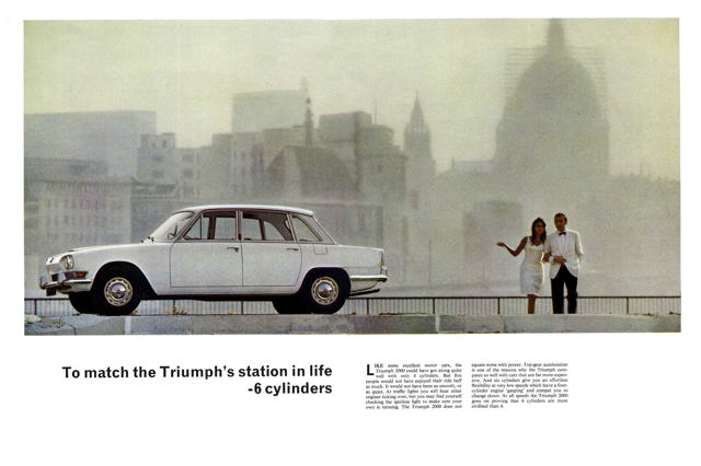 “All in all, the Triumph 2000 seems to have golden prospects; its modern technical specification, full equipment, roominess and pleasing proportions show no vestige of insularity, so that it should penetrate deep into export markets with the extensive backing of Standard-Triumph International and the Leyland parent.”